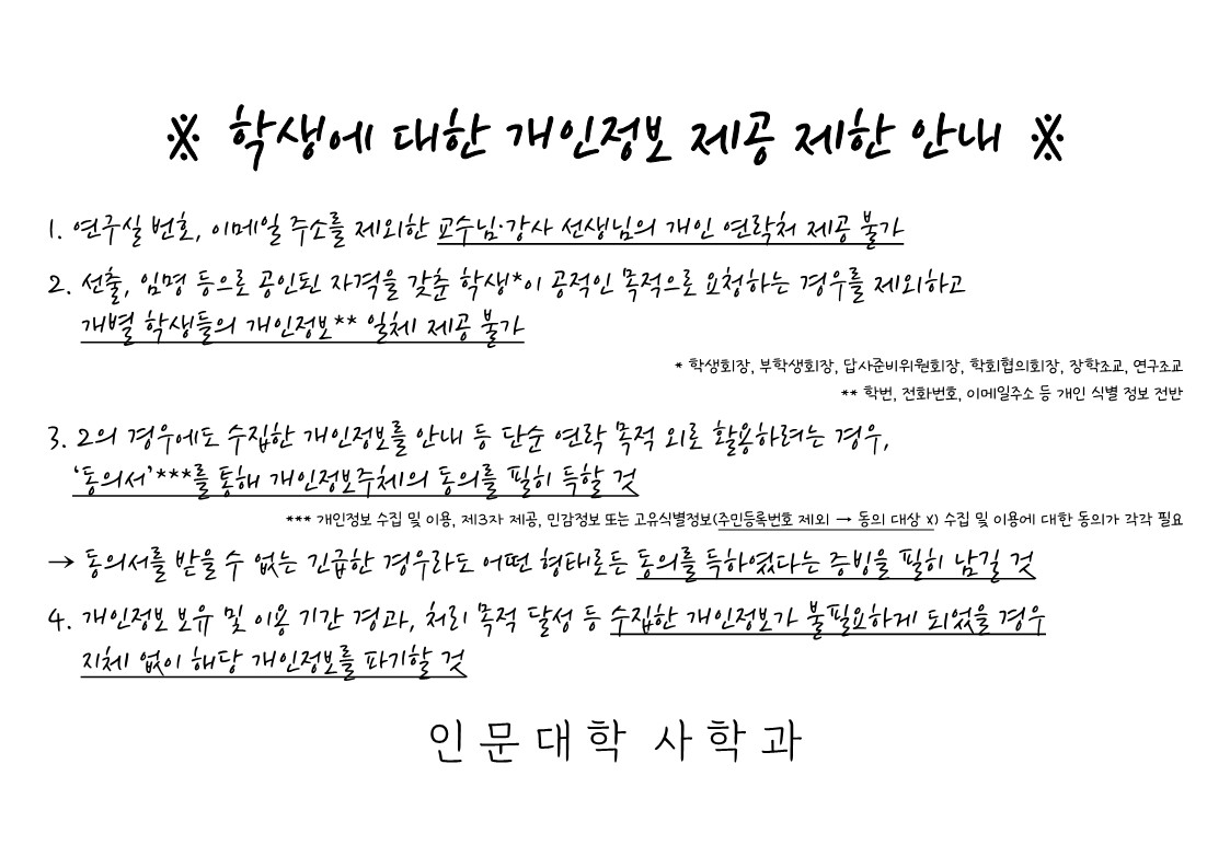 [기타] [필독][수정] 학생에 대한 개인정보 제공 제한 안내